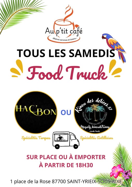 Deux foodtrucks seront aussi présents les samedis soirs de 18h30 à 21h à tour de rôle: venez ainsi découvrir les spécialités turques de Hac'Bon ou les spécialités antillaises de Kinou des Délices.