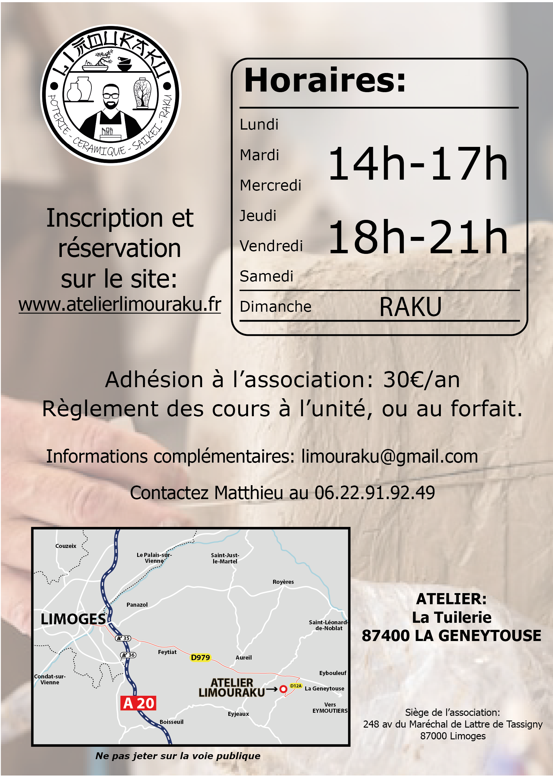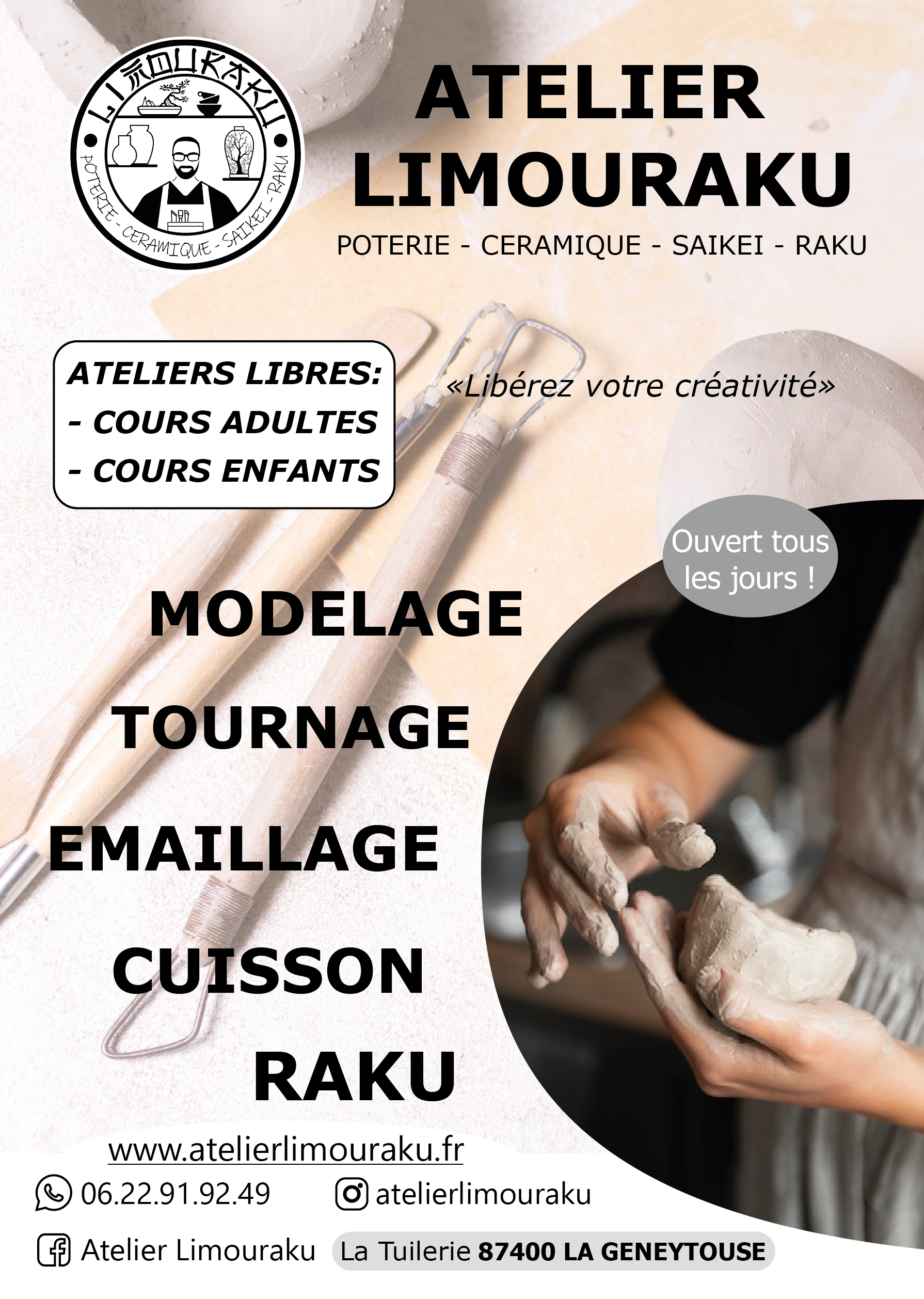 Plongez dans l’univers fascinant du Raku, cette technique japonaise de cuisson rapide qui sublime les contrastes entre terre brute et émaux craquelés. À l’atelier Limouraku, chaque pièce est le fruit d’une rencontre entre le feu, l’air et la main de l’artiste.