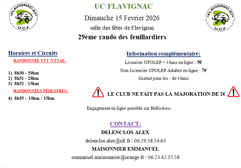 La Rando des Feuillardiers est un événement sportif convivial ouvert aux amateurs de VTT, de VTT à assistance électrique et de randonnée pédestre. Plusieurs parcours sont proposés pour tous les niveaux, permettant de découvrir les paysages et les chemins de la région dans une ambiance chaleureuse et accessible à tous.