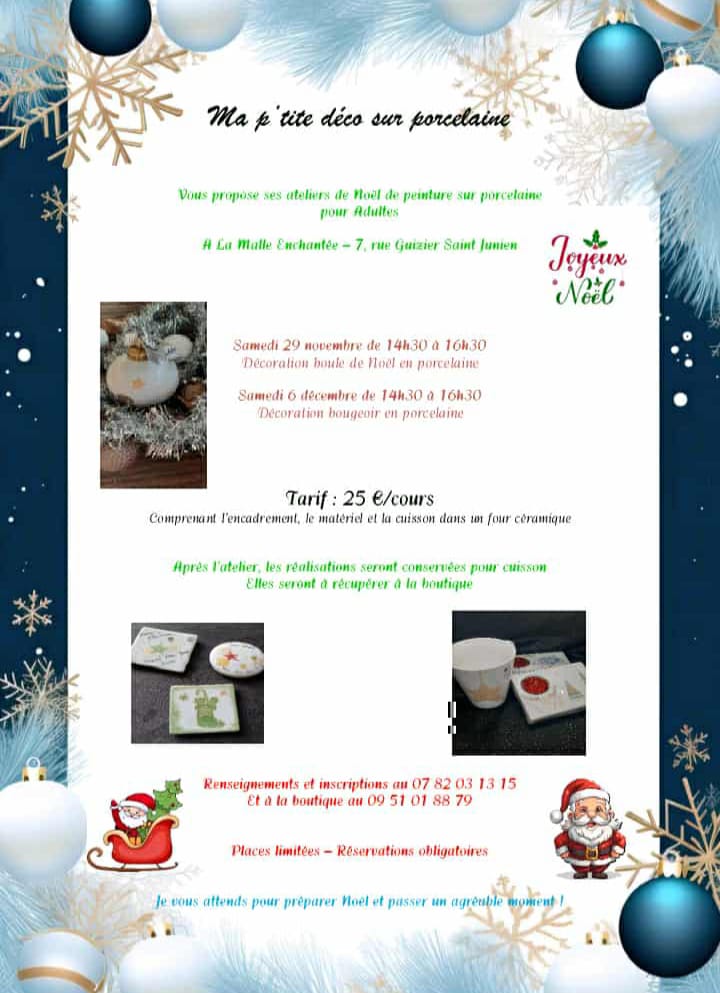 La boutique La Malle Enchantée à Saint-Junien, vous invite à ses ateliers de peinture sur porcelaine pour adultes.