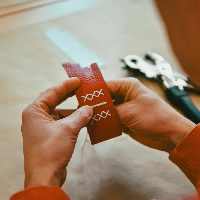 À partir d’un marque-page en cuir prédécoupé, les participant·es brodent avec des fils colorés selon le motif de leur choix ou un motif proposé. Ils et elles repartent avec une création unique. L’atelier est accessible à tous, sans prérequis. Des planches d’inspiration stimulent la créativité des participant·es.