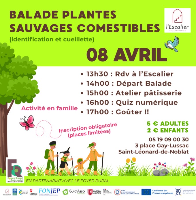 Le 8 avril, L’Escalier et le Foyer rural vous proposent une balade ludique et gourmande en famille autour des plantes sauvages comestibles.