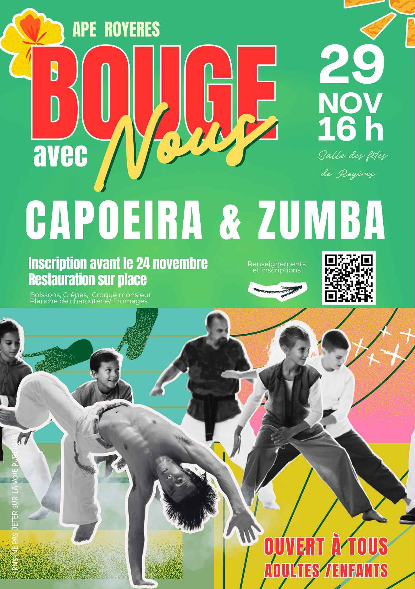 L’APE vous donne rendez-vous pour une soirée dynamique et festive autour de la capoeira et de la zumba !