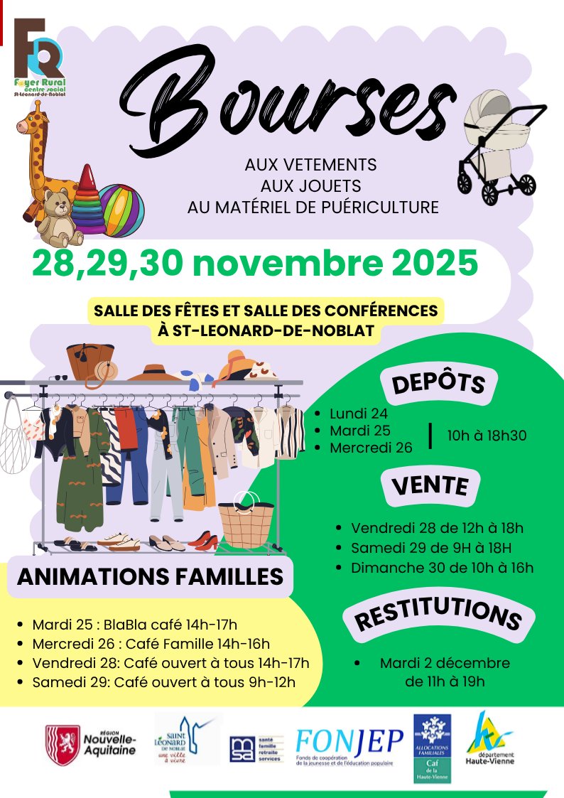 Bourse aux vêtements et jouets et matériel puériculture organisée par le Foyer Rural