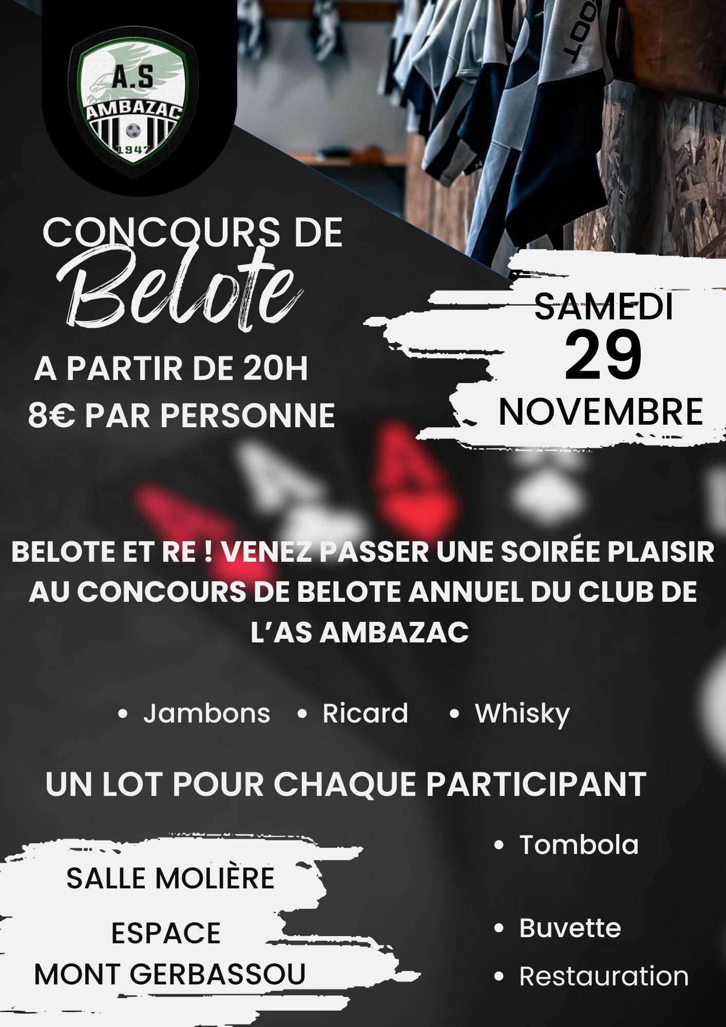 Retrouvez nous lors de notre traditionnel concours de belote pour passer une bonne soirée autour du célèbre jeu de carte. Un lot pour chaque participant ! Tombola.