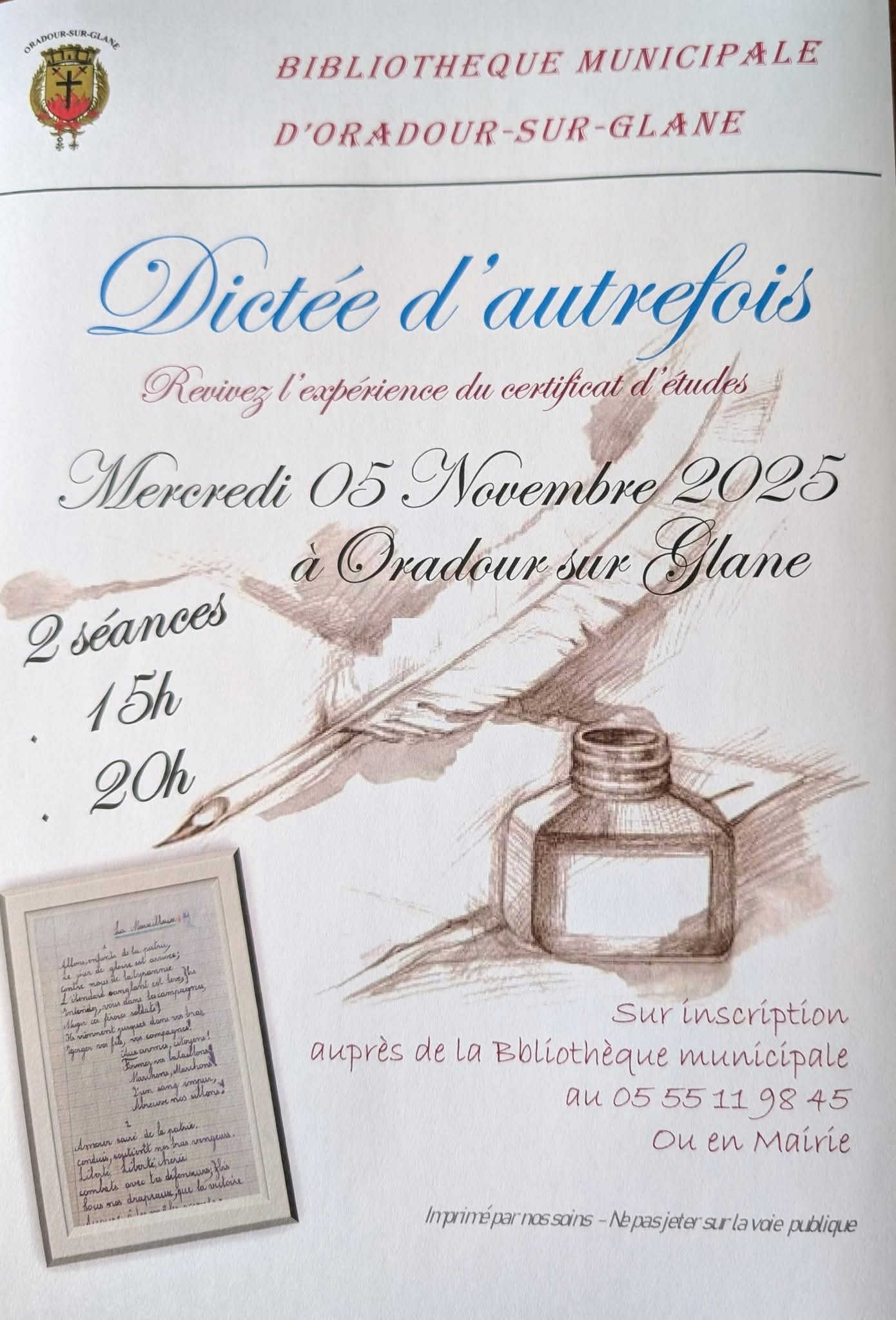 Inscriptions conseillées à la bibliothèque ou à la mairie d’Oradour-sur-Glane à partir du 15 septembre.
