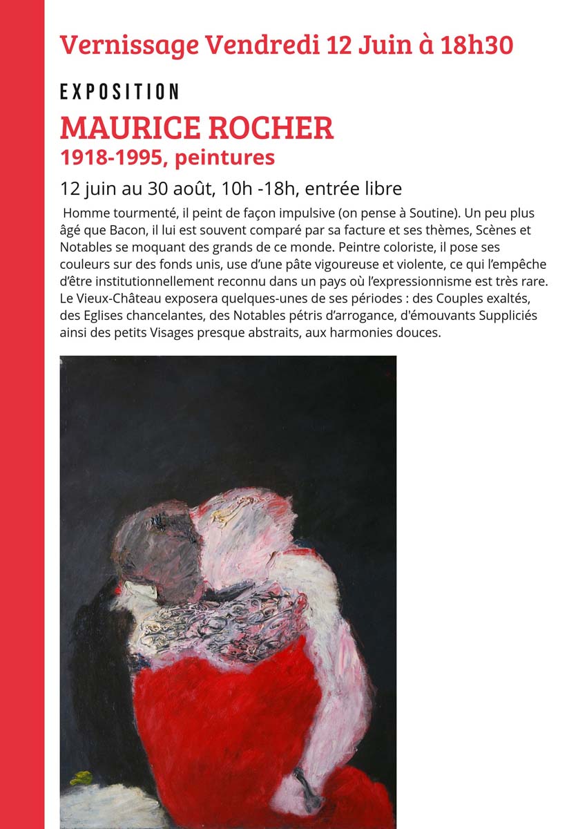Homme tourmenté, il peint de façon impulsive (on pense à Soutine). Un peu plus âgé que Bacon, il lui est souvent comparé par sa facture et ses thèmes, Scènes et Notables se moquant des grands de ce monde. Peintre coloriste, il pose ses couleurs sur des fonds unis, use d’une pâte vigoureuse et violente, ce qui l’empêche d’être institutionnellement reconnu dans un pays où l’expressionnisme est très rare. Le Vieux-Château exposera quelques-unes de ses périodes : des Couples exaltés, des Églises chancelantes, des Notables pétris d’arrogance, d’émouvants Suppliés ainsi des petits Visages presque abstraits, aux harmonies douces.