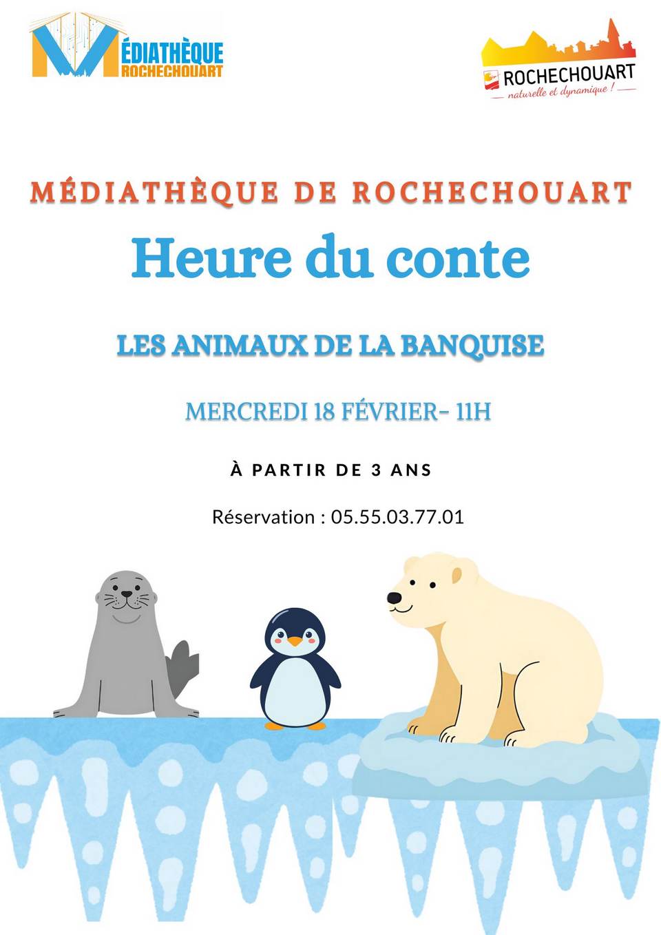 Plongez dans l’univers magique des animaux de la banquise à la Médiathèque de Rochechouart ! Venez découvrir les merveilles de l’Arctique en compagnie de nos amis le phoque, le manchot et l’ours polaire ! Au programme : des histoires captivantes, des rires et des moments complices pour éveiller la curiosité des petits explorateurs. Un rendez-vous doux et ludique pour partager en famille l’amour des livres et de la nature. Les contes seront suivis d’un temps d’échange pour prolonger la magie.