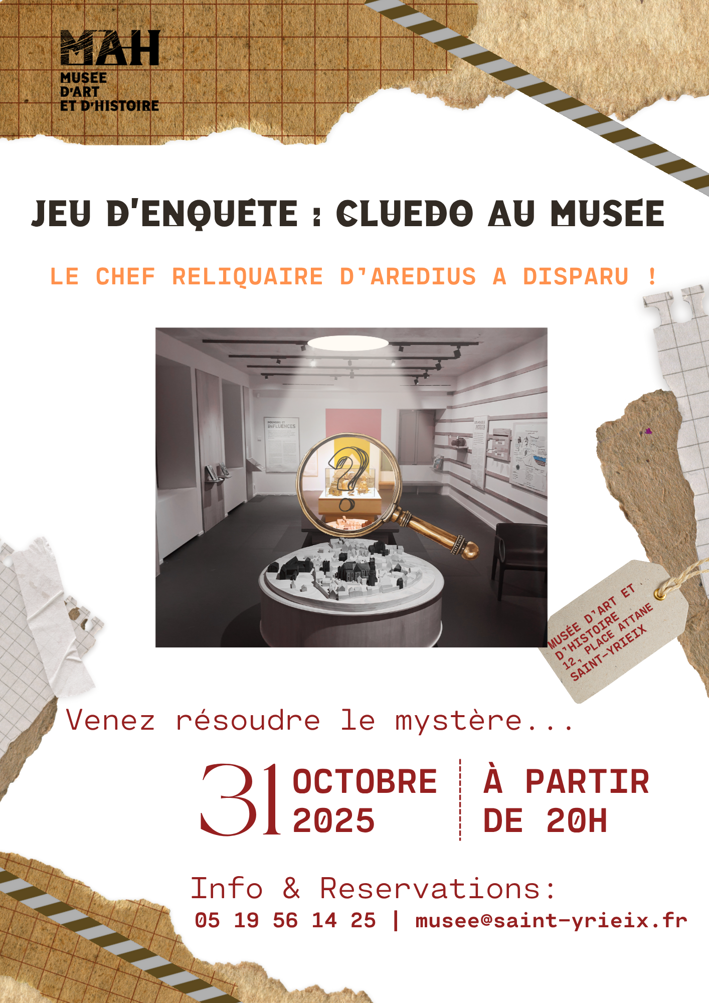 Une nuit d’automne, alors que le MAH s’apprête à fermer ses portes, l'équipe du musée s'aperçoit que le chef reliquaire d’Aredius, trésor inestimable du patrimoine local, a mystérieusement disparu ! Entre témoins évasifs et indices disséminés dans les salles d’exposition, les visiteurs deviennent à leur tour de véritables détectives.