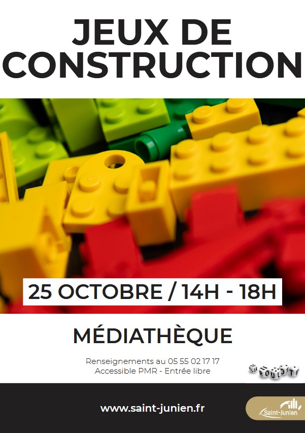Les vacances s’annoncent ludiques et créatives à la médiathèque de Saint-Junien ! La Roulotte s’installe salle Laurentine Teillet pour un après-midi placé sous le signe du jeu et de l’imagination. Petits et grands sont invités à construire, assembler et inventer librement grâce à une grande variété de jeux de construction mis à disposition. Un moment convivial à partager en famille ou entre amis, où la bonne humeur et la créativité sont reines. Entrée libre : il ne vous reste plus qu’à venir jouer !