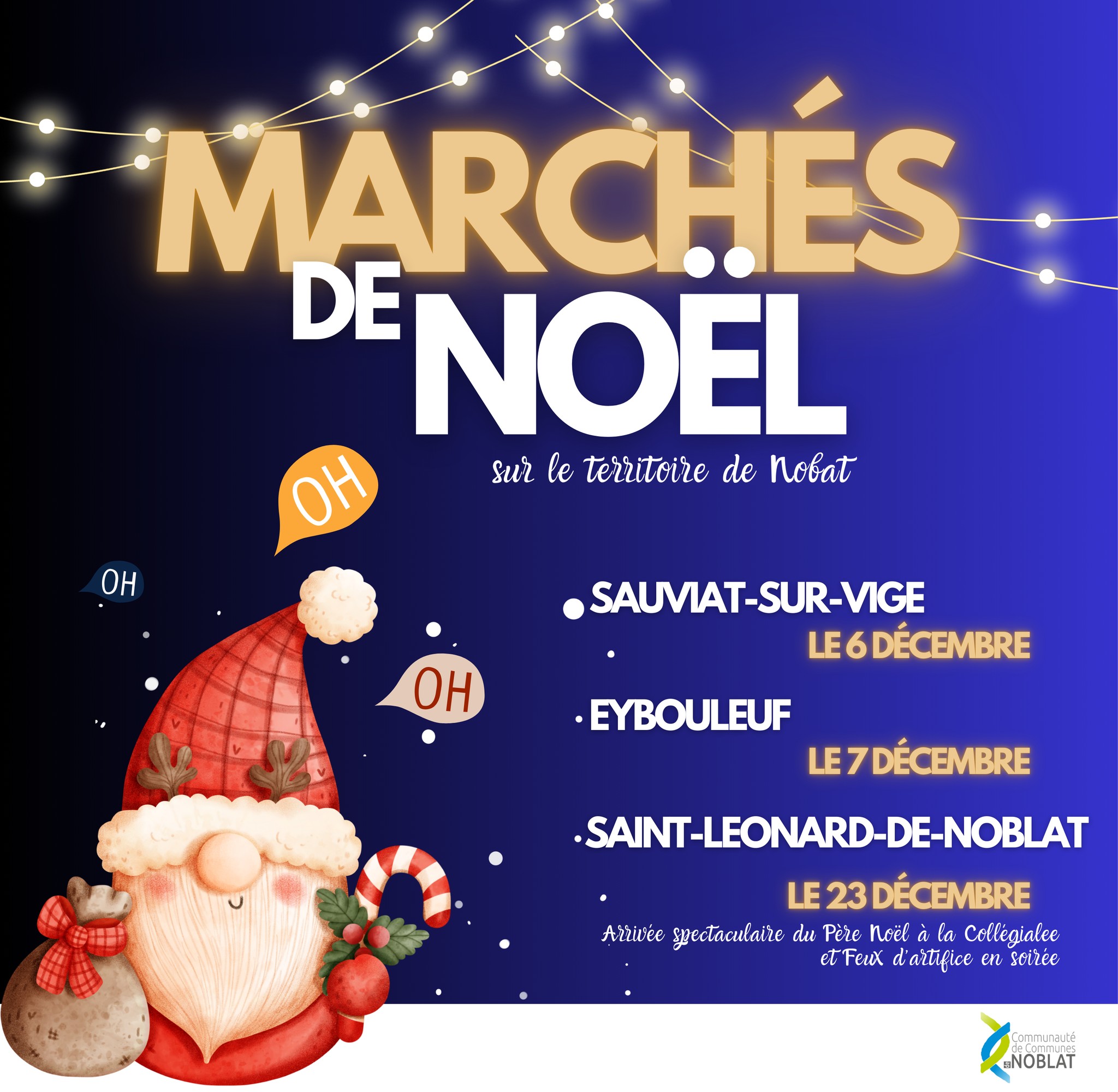 Allumage des illuminations de noël par les enfants de Saint-Léonard-de-Noblat en présence du Père Noël. Les enfants pourront déposer leur courrier dans une boîte aux lettres mise à disposition. Distribution de chocolat chaud aux enfants Lion’s Club et Graines de Miaulétous : Vente de vin chaud au profit de Téléthon Graines de Miaulétous : Vente de créations réalisées par les enfants de l’accueil de loisirs périscolaire.