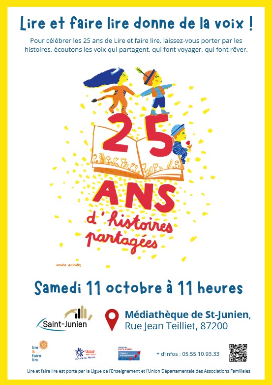 La Médiathèque de Saint-Junien vous convie à venir profiter d’un moment de lecture festif avec les bénévoles de l’association Lire et faire lire. De merveilleuses histoires à écouter en famille, pour petits et grands. Cet événement aura lieu simultanément dans plusieurs lieux culturels de Haute-Vienne : Ambazac, Rilhac-Rancon, Châteauneuf-la-Forêt, Limoges (librairie Rêv’en pages), Meuzac (Maison du Père Castor) et bien sûr… à Saint-Junien ! Une belle occasion de repartir les bras chargés de livres… et la tête remplie d’histoires.
