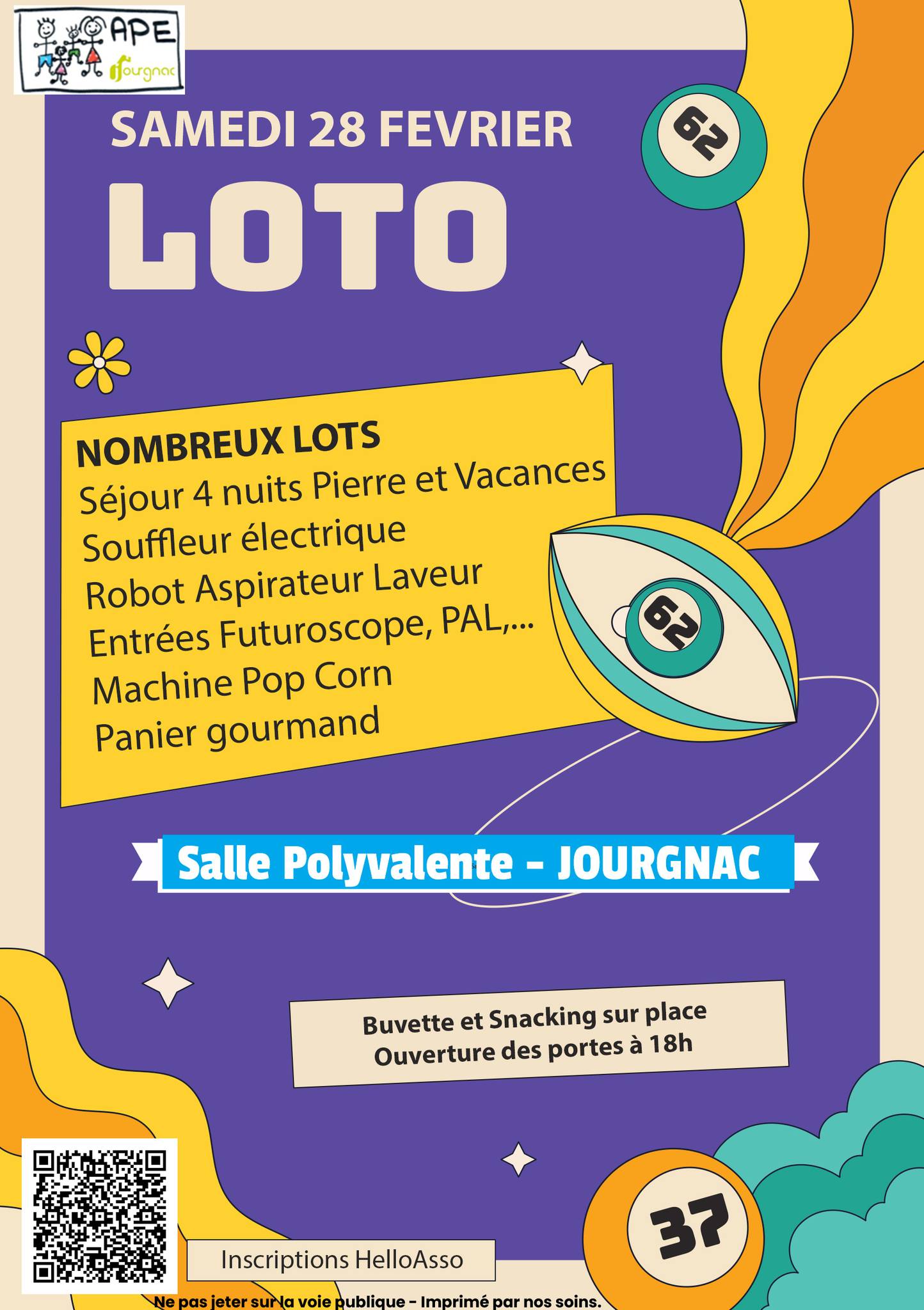 Installez-vous, ouvrez grand les yeux… et laissez monter le frisson du jeu ! Cette soirée loto promet un moment chaleureux, rythmé par l’espoir de voir les bons numéros s’aligner et la joie de partager un instant festif avec ses proches. À la clé, de nombreux lots séduisants qui font rêver : escapade en séjour, équipements pour la maison, loisirs et gourmandises à savourer. Entre deux cartons, profitez d’une ambiance détendue, d’une buvette et d’un espace snacking pour prolonger le plaisir. Un rendez-vous idéal pour se retrouver, vibrer ensemble et repartir avec des souvenirs… et peut-être un joli lot sous le bras !