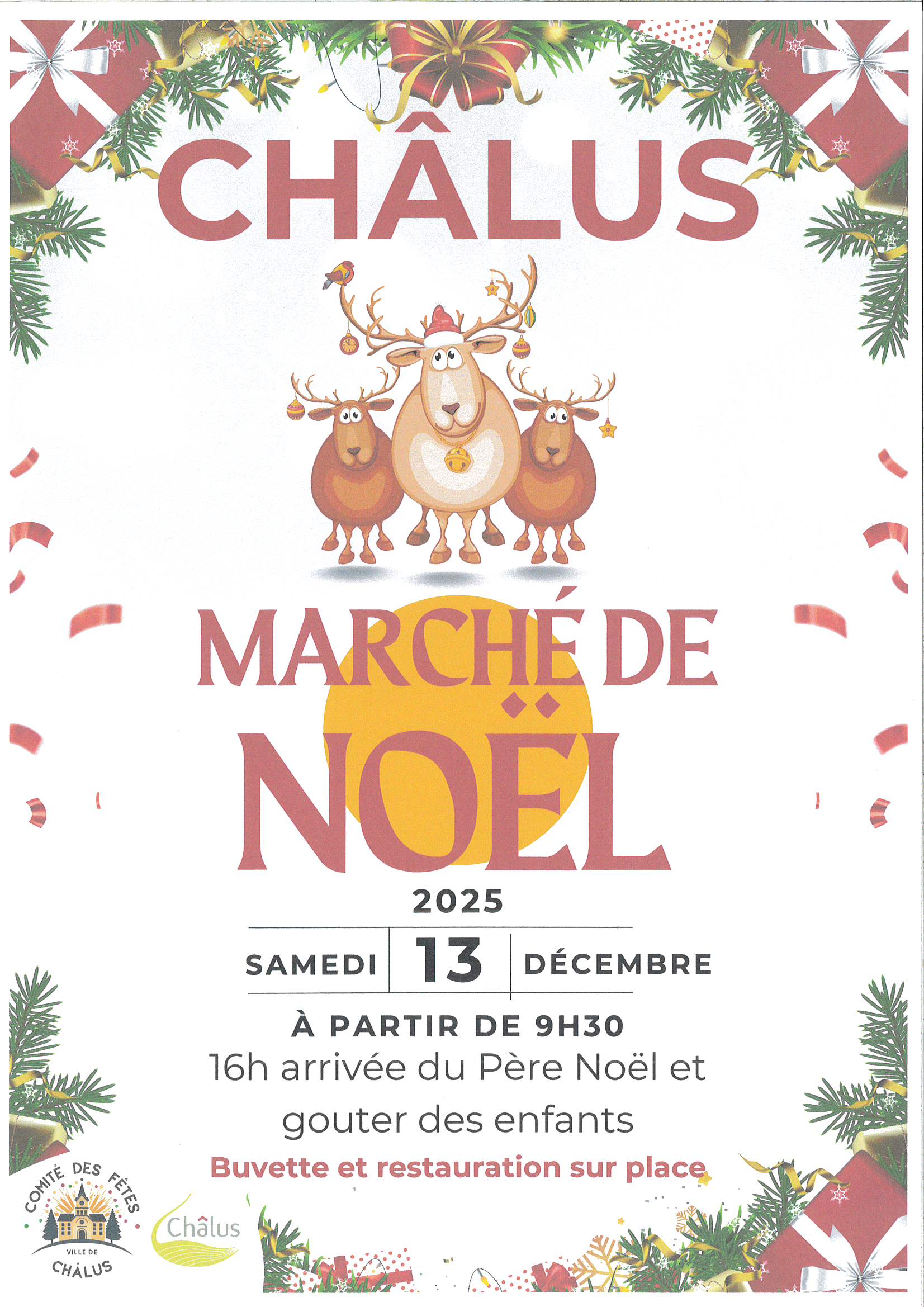 Dès 9h30, plongez dans la magie des fêtes au cœur de Châlus : de nombreux exposants, artisans et délicieux produits gourmands vous attendent pour préparer Noël comme il se doit.