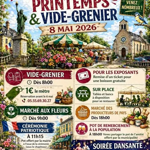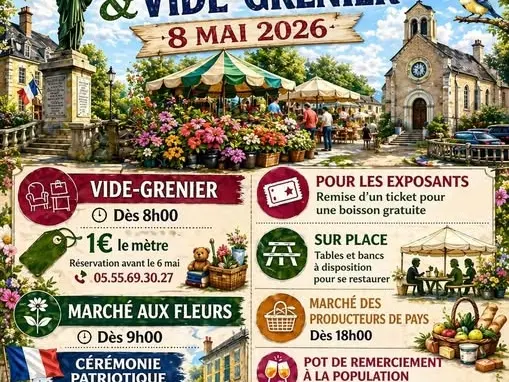 A partir de 8h : Vide grenier 1€ le mètre (réservation avant le 6 mai).