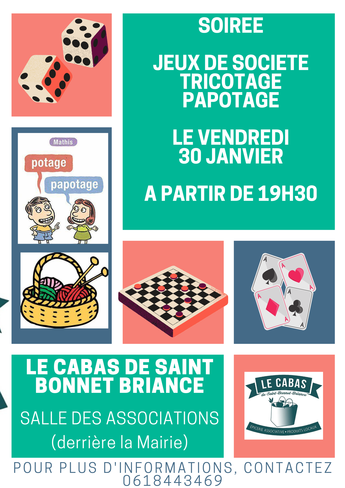 Pour que l'hiver passe plus vite, venez participer à nos soirées jeux, tricotage, papotage le dernier vendredi du mois de janvier à mars à partir de 19h30 - salle des associations.