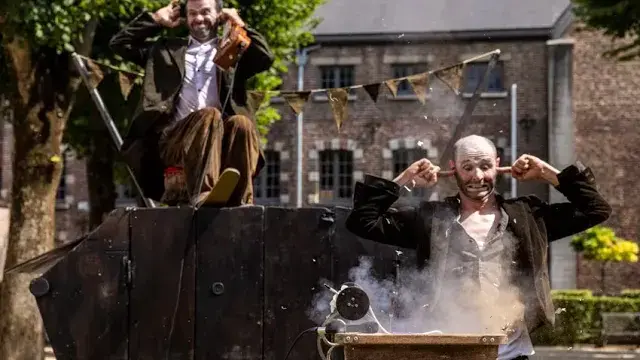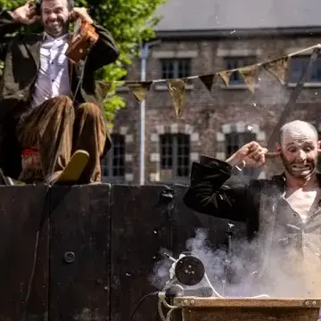Ce duo de clowns a usé ses (grandes) semelles sur les pavés et les scènes du monde entier depuis plus de 25 ans. À la manière de Laurel et Hardy, on suit avec curiosité les péripéties de ces deux clowns musiciens, en recherche constante d’équilibre, trimballant une carriole. La charrette est à la fois logis, loge et promontoire. Comment survivre quand le monde s’écroule perpétuellement sous nos pieds? Dans un équilibre précaire, ils trouvent, là, en un moment suspendu, un compromis, une solution salutaire qui leur permet de poursuivre la route, le chemin de leur vie, en jouant bon gré mal gré leur valse délicate, pour cloches et ukulélé.