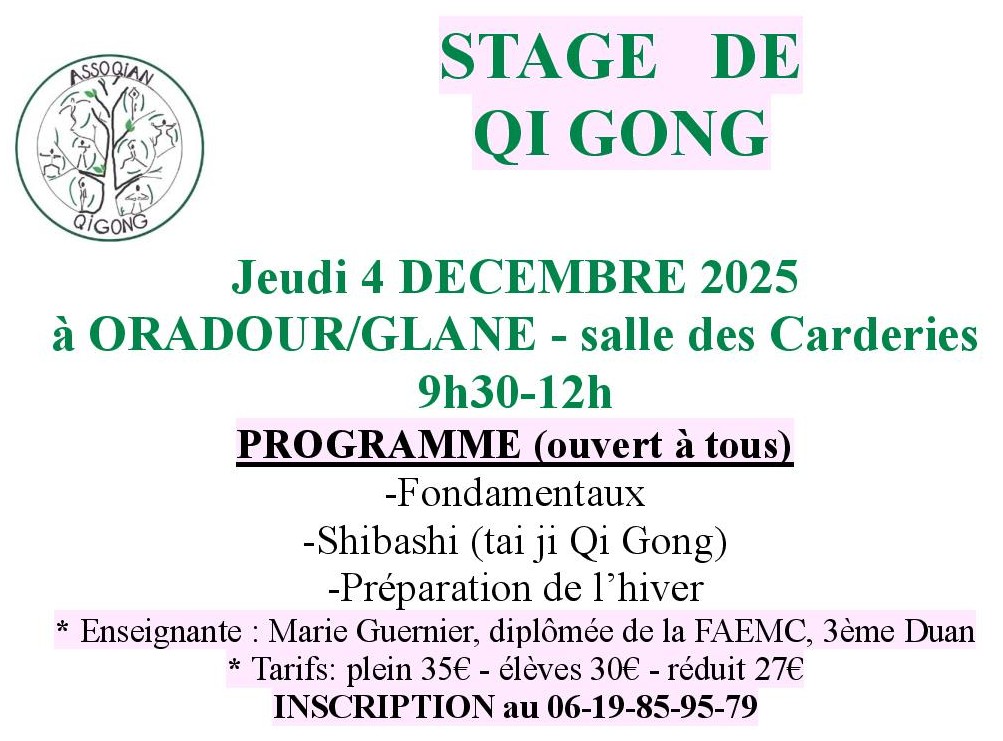 Offrez-vous une matinée rien que pour vous, et venez découvrir les bienfaits du Qi Gong, une discipline chinoise ancestrale qui allie douceur, respiration et mouvement. Accessible à tous, quelle que soit la condition physique, le Qi Gong favorise la détente, la vitalité et l’équilibre intérieur. Au fil des exercices, vous apprendrez à apaiser le stress, améliorer votre concentration et stimuler la circulation de l’énergie dans tout le corps. Encadrée par une enseignante diplômée de la FAEMC, cette séance en intérieur est une véritable parenthèse de ressourcement pour le corps et l’esprit. Venez respirer, bouger et retrouver votre énergie dans une ambiance bienveillante et apaisante !