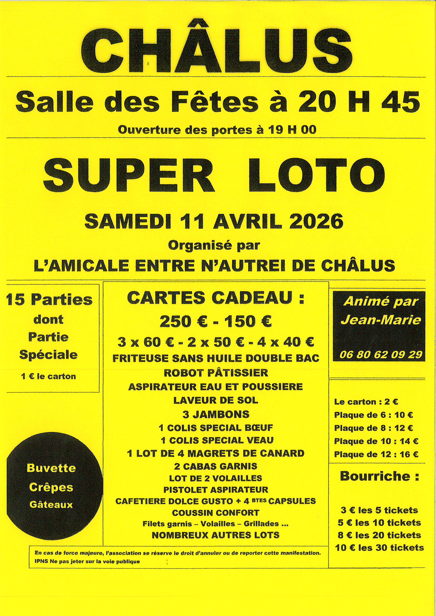 À Châlus, le Super Loto propose 15 parties, dont une spéciale, dans une ambiance conviviale et animée.
