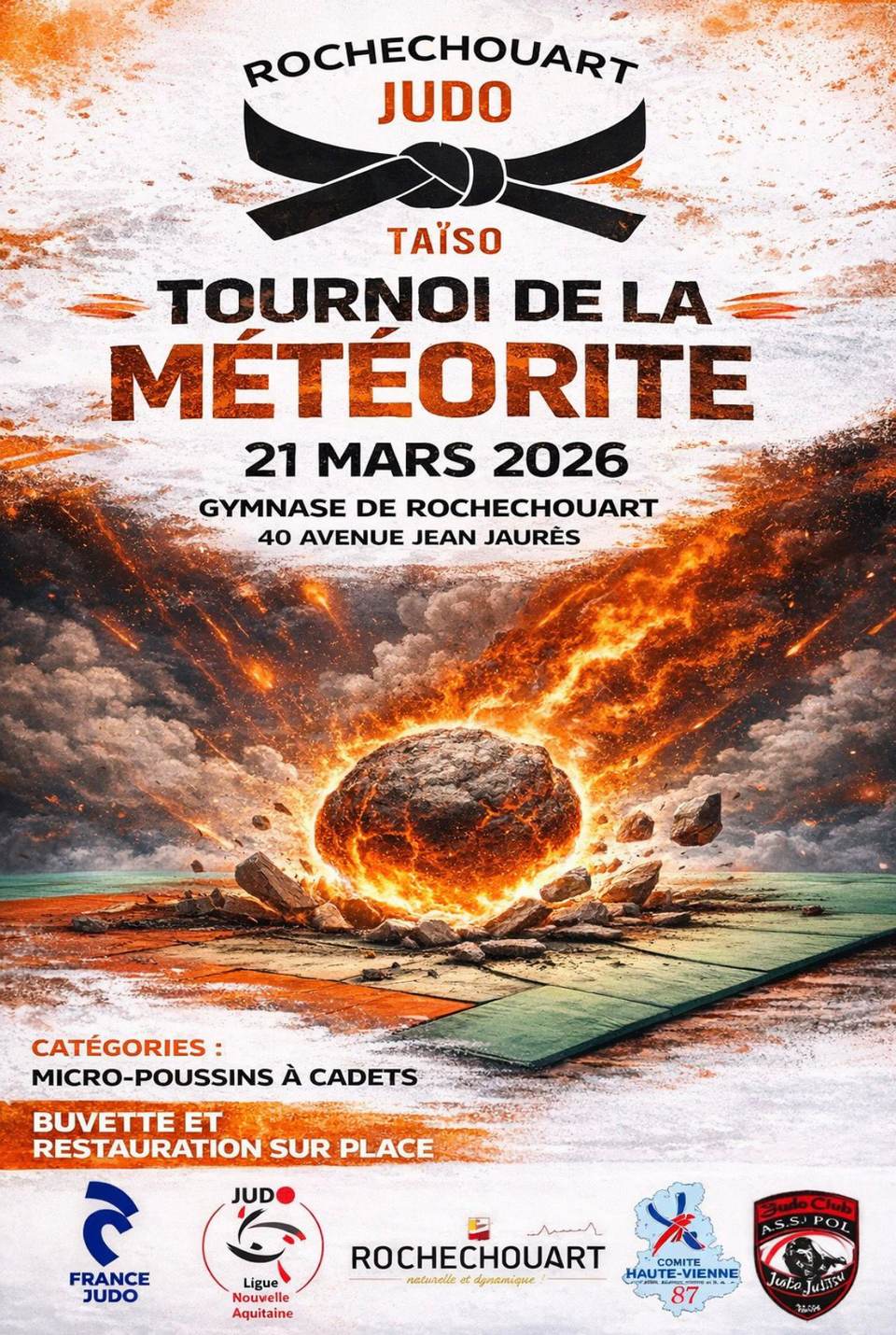Le Gymnase de Rochechouart vibrera au rythme d’un tournoi de judo pas comme les autres ! Organisé par le ROC Judo, ce rendez-vous promet des combats intenses dans la catégorie Micro-Poussins à Cadets. Une occasion unique de découvrir de jeunes talents, leur détermination et leur esprit sportif !