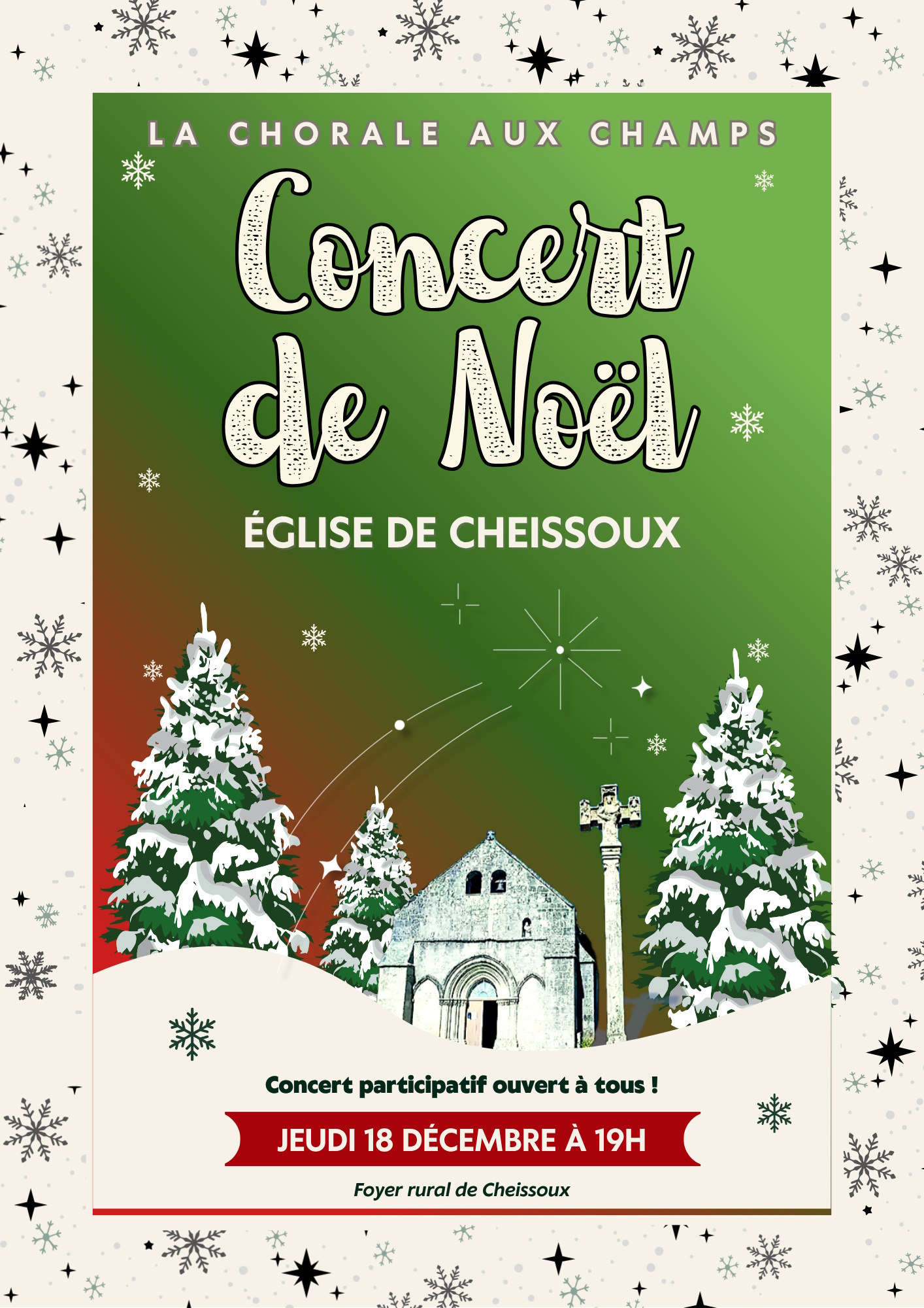 La Chorale aux Champs vous invite à vivre la magie de Noël lors d’une veillée chantée, le jeudi 18 décembre à 19h, en l’église de Cheissoux. Ce concert promet une soirée chaleureuse et conviviale, placée sous le signe de l’émotion et du partage.