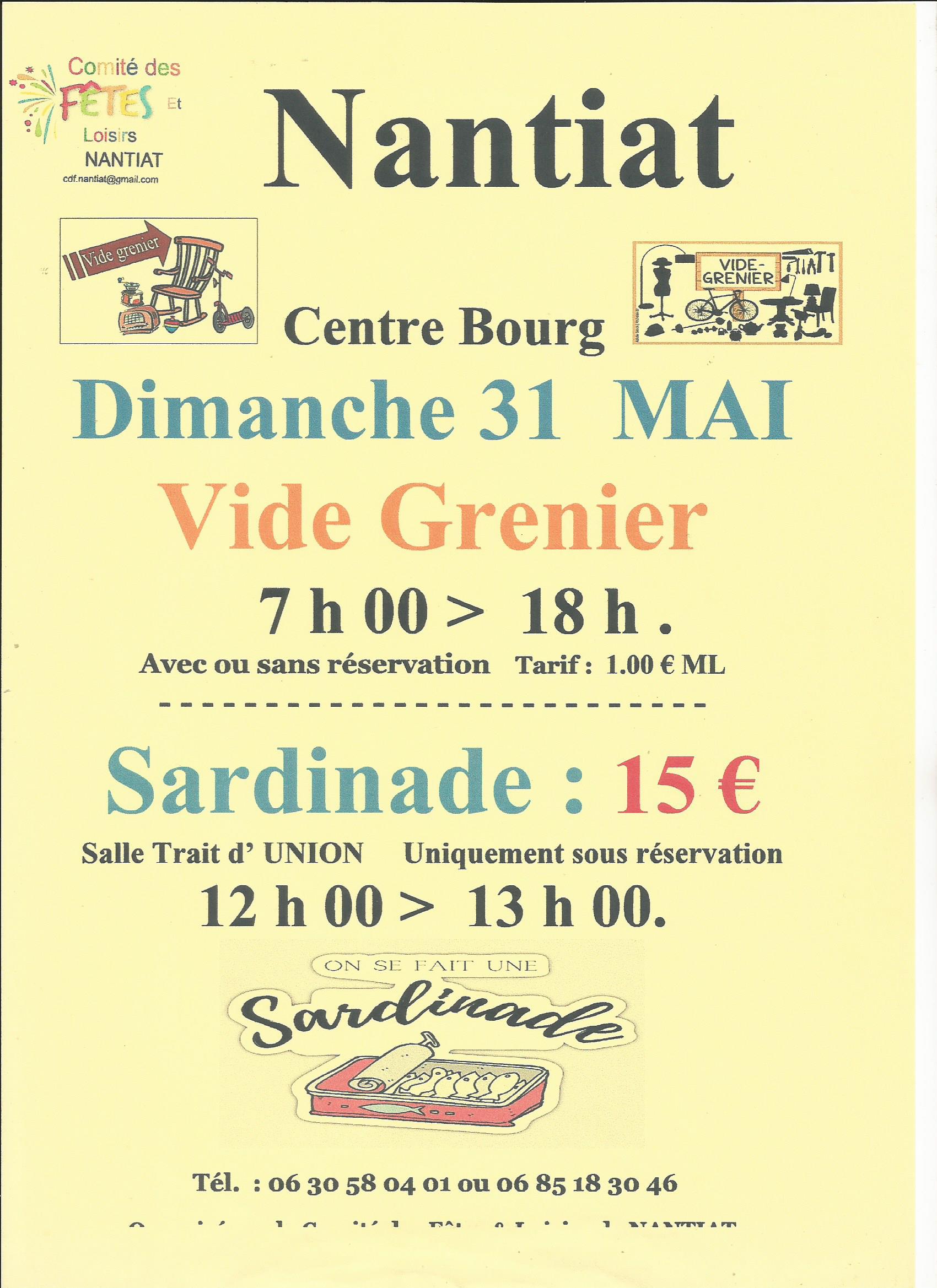 Profitez d’une journée conviviale mêlant bonnes affaires et animations pour toute la famille ! Au programme : vide-greniers pour chiner et dénicher des trésors, sardinade pour un moment gourmand et authentique, manèges et animations tout au long de la journée. Une ambiance chaleureuse idéale pour flâner, se divertir et partager un bon repas en plein air.