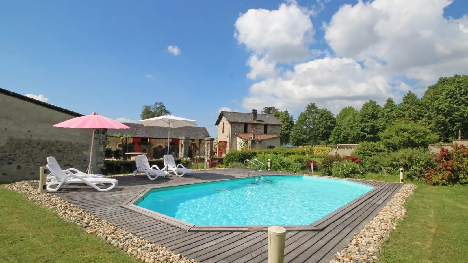 Maison indépendante sur un vaste domaine agricole et forestier de 1000 ha. Sur place piscine (10 x 5) commune à 4 locations de vacances de juin à septembre selon conditions météo. Jardin privatif de 300 m². Randonnée et balade sur place. Le centre aquatique Aquapolis de Limoges est à 11 km.
