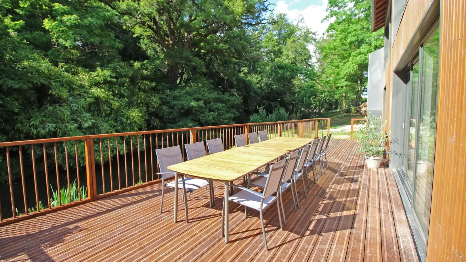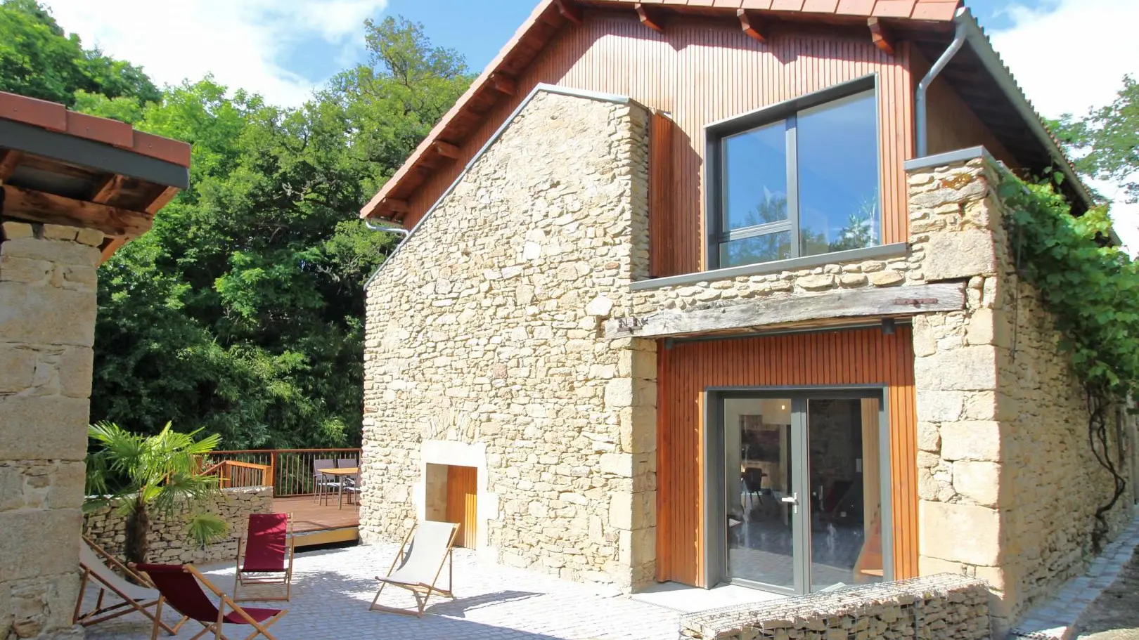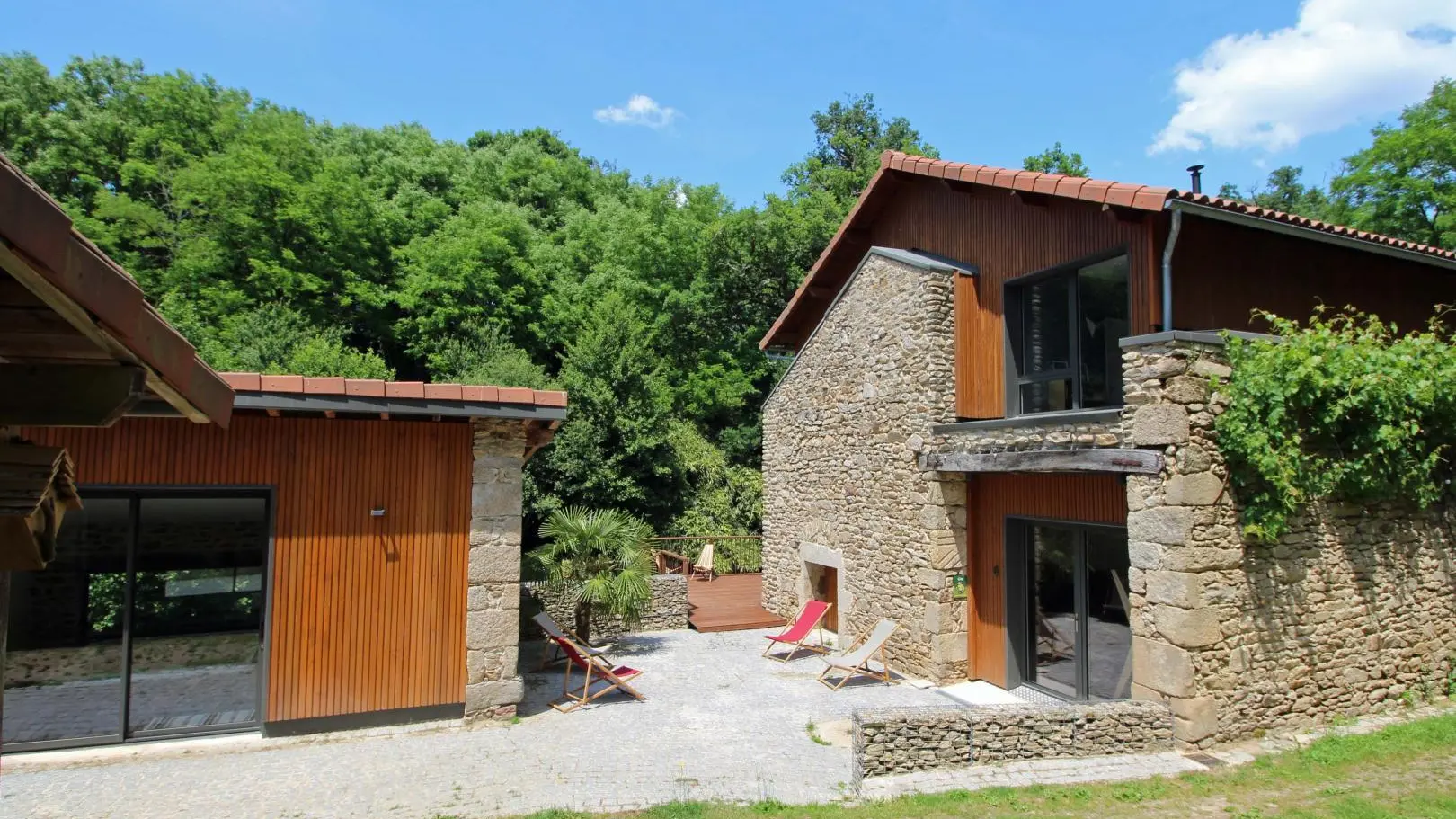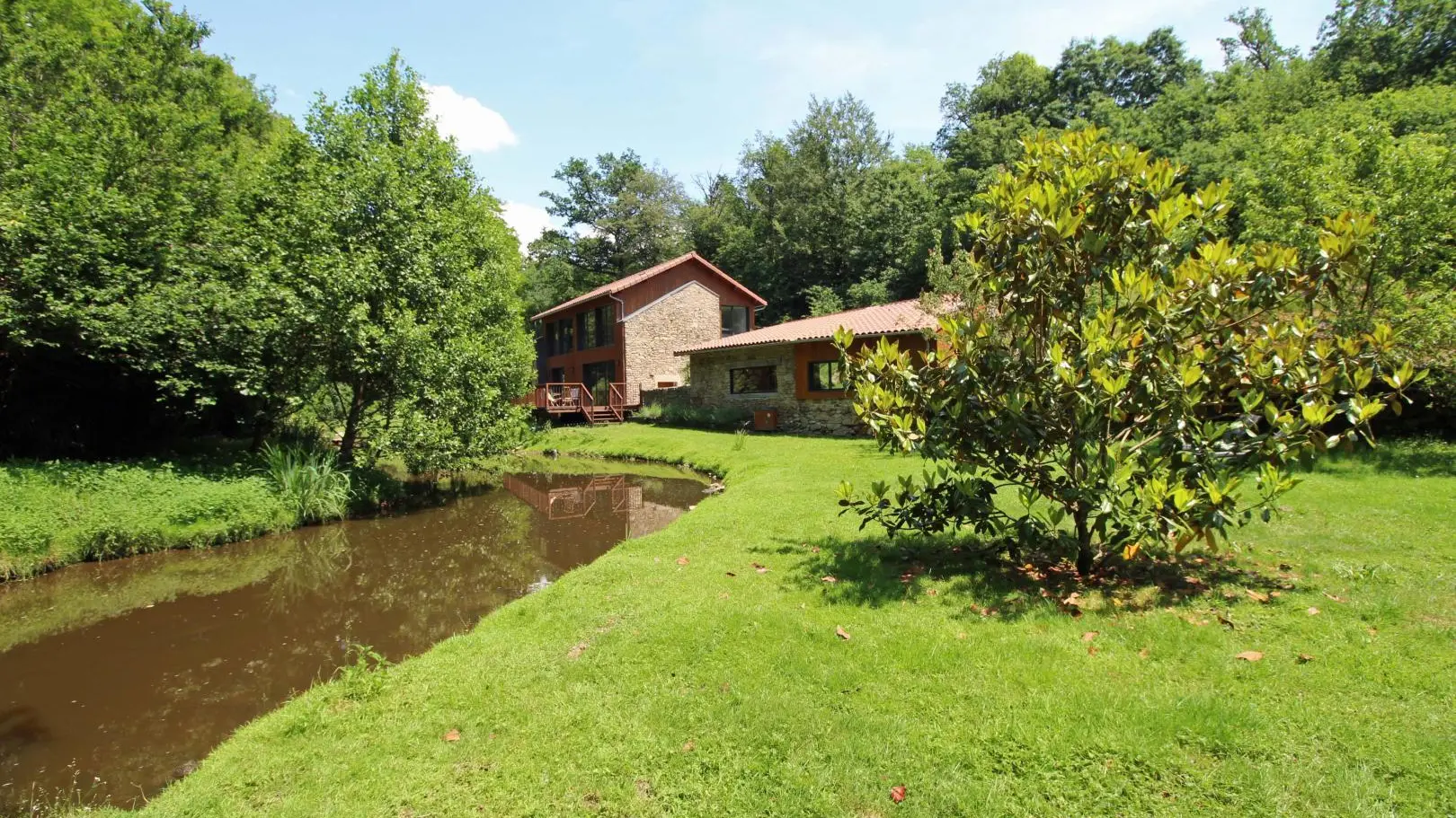 Telle une longue péniche amarrée au bord de l'eau, le gîte est rénové dans le respect des matériaux d'origine. Il offre par ses grandes baies une vue imprenable sur la rivière, sa végétation immédiate et la faune qui l'occupe. En bordure de la Glane, au cœur d'un espace naturel et sauvage totalement privé d'environ 2500 m² où autrefois fonctionnait un moulin. Chaque chambre de l'étage est un véritable balcon suspendu : spectacle naturel assuré ! Gite qualifié écogestes et biodiversité. Organisation de réceptions festives interdites. Un espace détente de 40 m² est proposé en option et privatisé, au tarif de 65 à 95 €/jour (prix dégressif suivant le nombre de jours souhaités, à convenir avec le propriétaire).