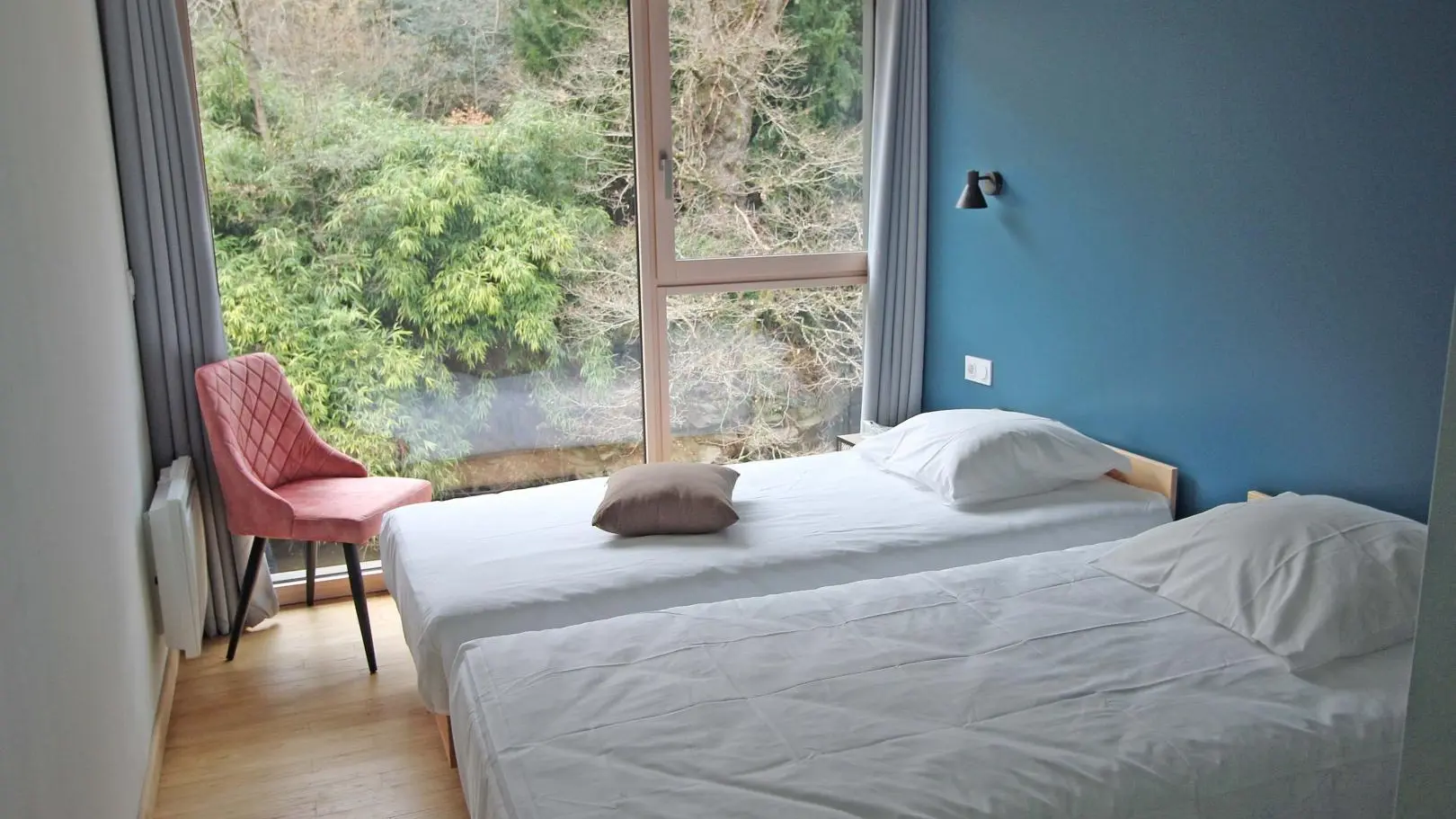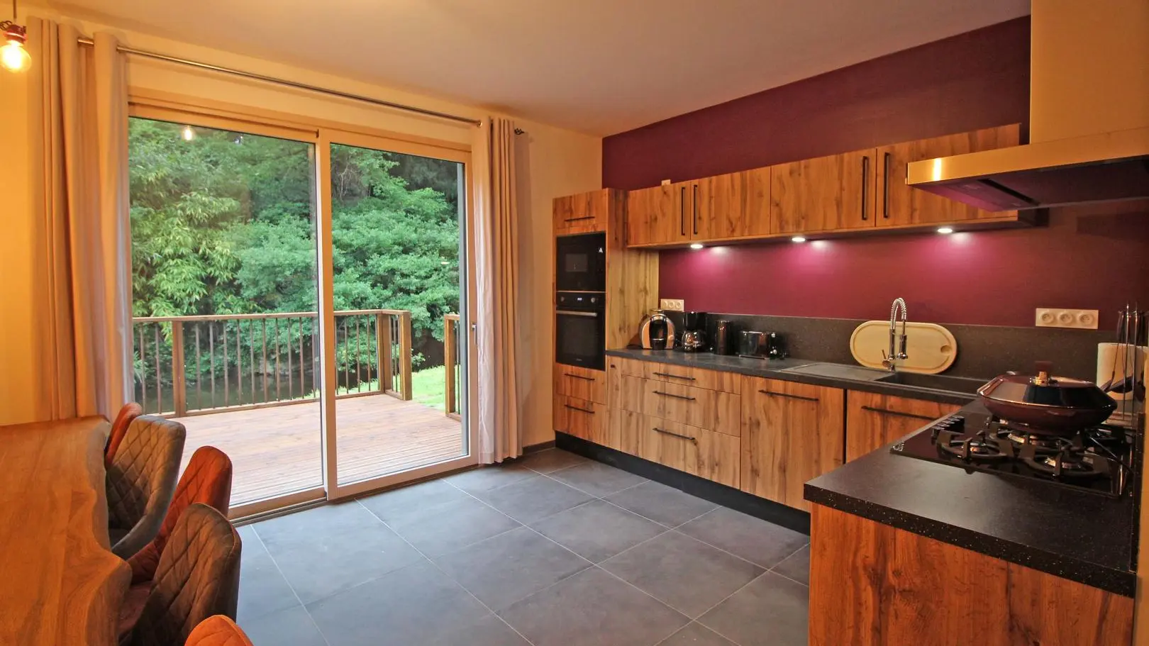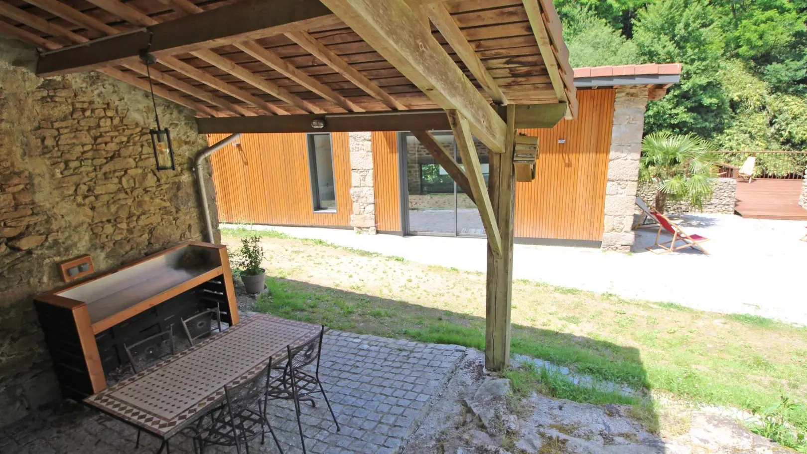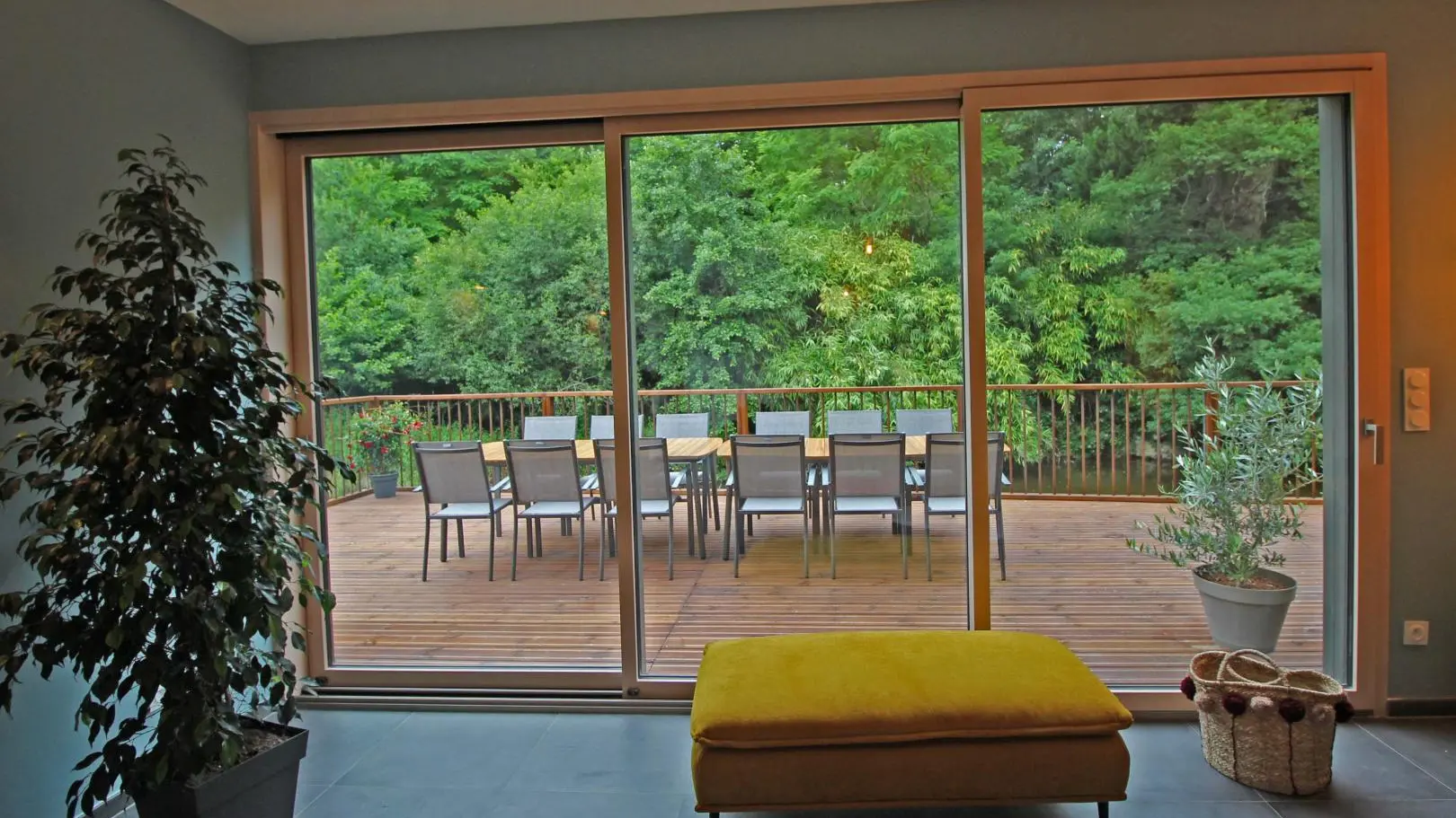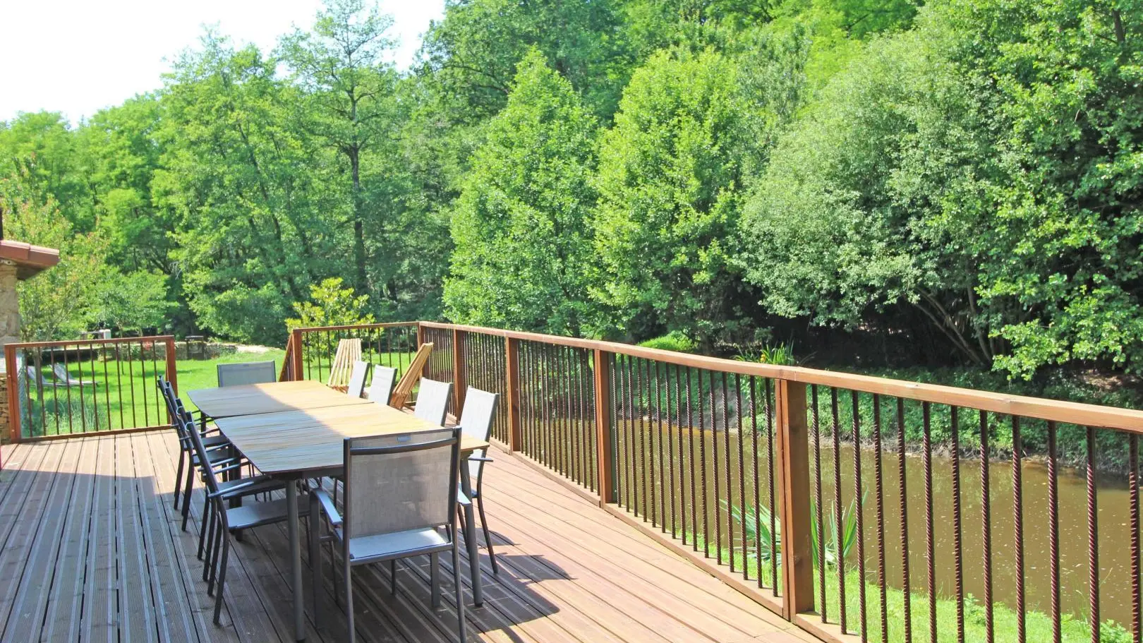 Telle une longue péniche amarrée au bord de l'eau, le gîte est rénové dans le respect des matériaux d'origine. Il offre par ses grandes baies une vue imprenable sur la rivière, sa végétation immédiate et la faune qui l'occupe. En bordure de la Glane, au cœur d'un espace naturel et sauvage totalement privé d'environ 2500 m² où autrefois fonctionnait un moulin. Chaque chambre de l'étage est un véritable balcon suspendu : spectacle naturel assuré ! Gite qualifié écogestes et biodiversité. Organisation de réceptions festives interdites. Un espace détente de 40 m² est proposé en option et privatisé, au tarif de 65 à 95 €/jour (prix dégressif suivant le nombre de jours souhaités, à convenir avec le propriétaire).