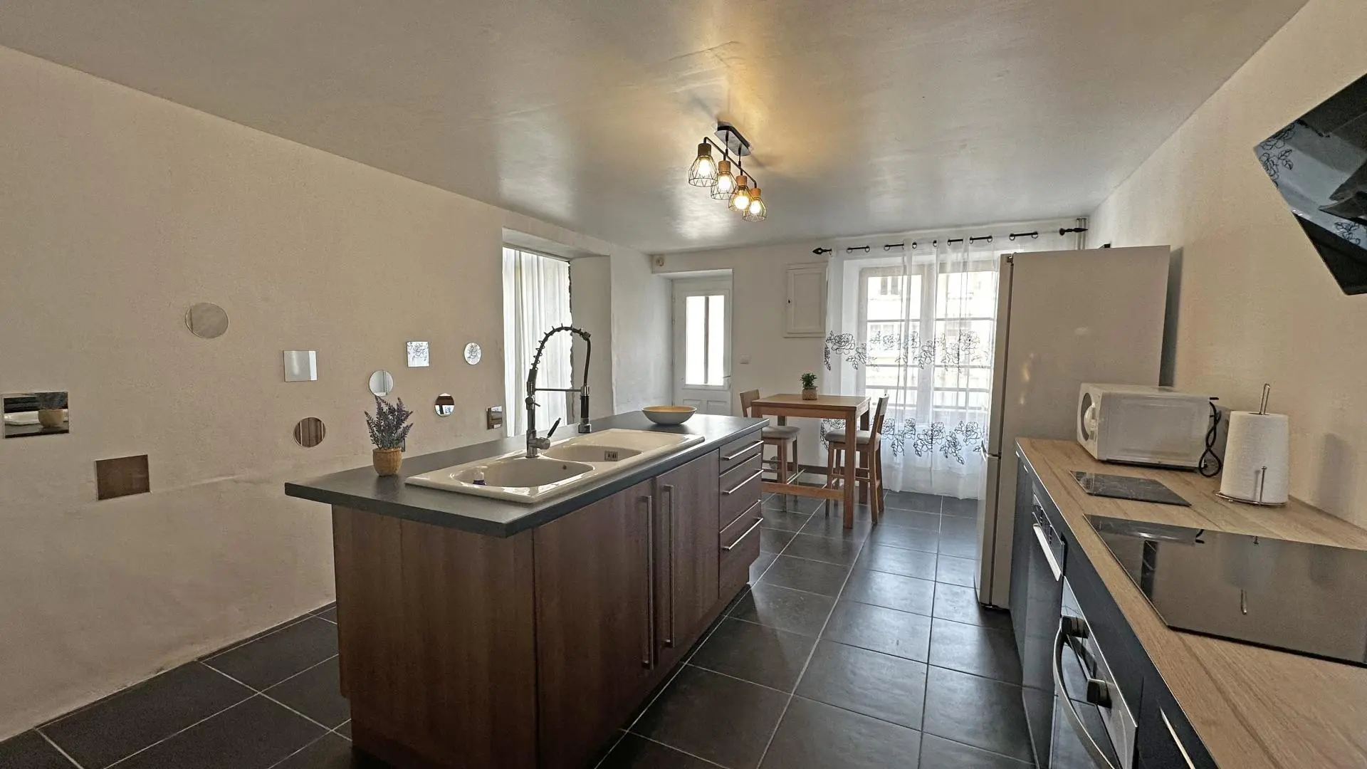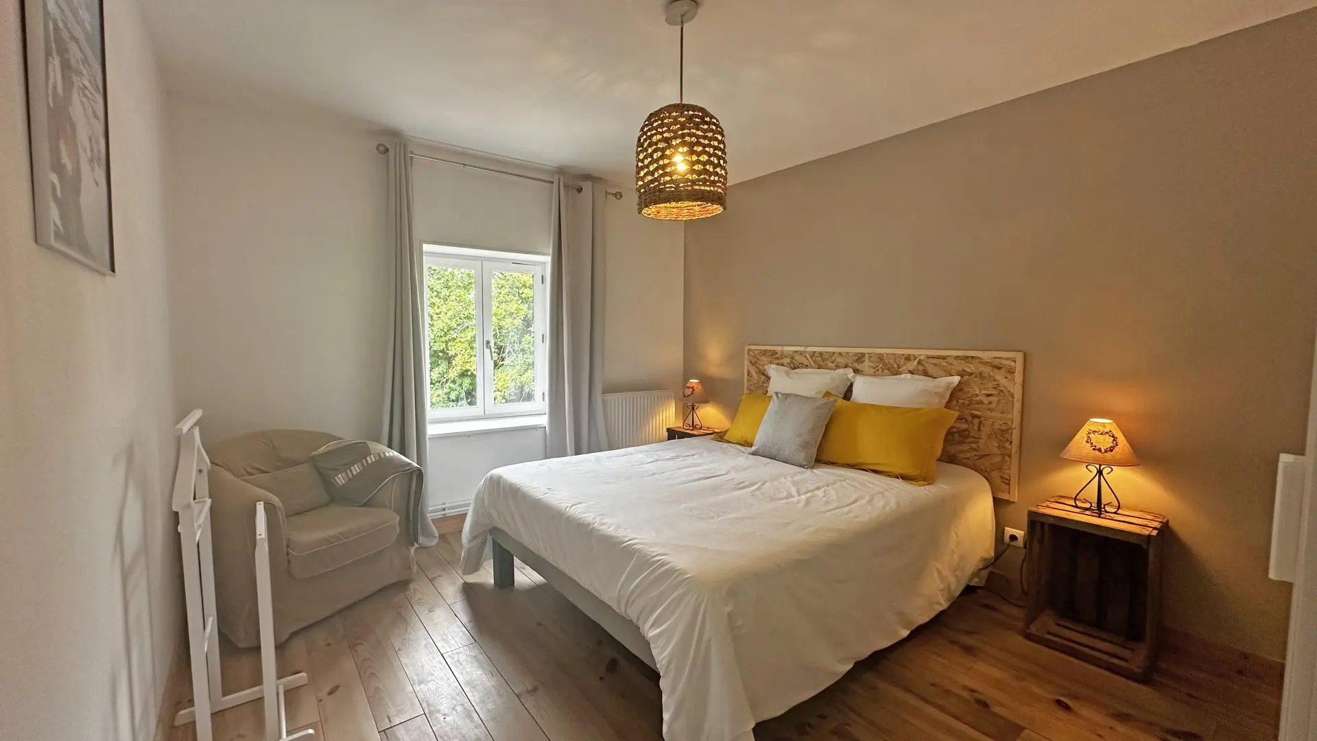 Située dans un petit bourg , cette ancienne maison familiale appartenait autrefois à l'oncle d'Olivier. Entièrement rénovée par Stéphanie et Olivier, elle a su conserver son âme tout en offrant un intérieur moderne, confortable et soigné avec de beaux volumes. Chaque chambre est personnalisée avec goût et décorée de lithographies rapportées de leurs voyages, apportant une atmosphère chaleureuse et dépaysante. À l'arrière de la maison, vous profitez d'un agréable jardin avec terrasse, idéal pour les repas en extérieur ou les moments de détente et d'une agréable piscine privative (6m x 3 m) ouverte de juin à septembre . À deux pas du gîte, une aire de jeux et un terrain de foot raviront les enfants comme les plus grands.