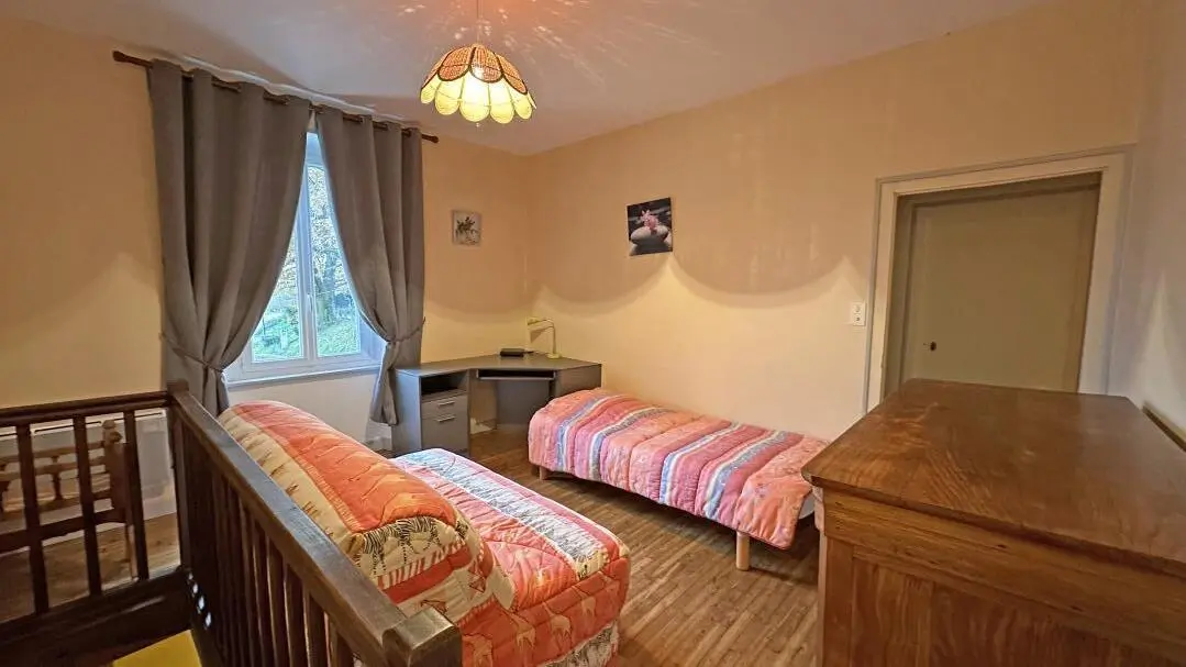 Maison indépendante ouvrant sur un terrain clos de 1000 m², dans un petit hameau qui domine la vallée de la Combade, belle vue dégagée sur les collines du Pays des Monts et Barrages.