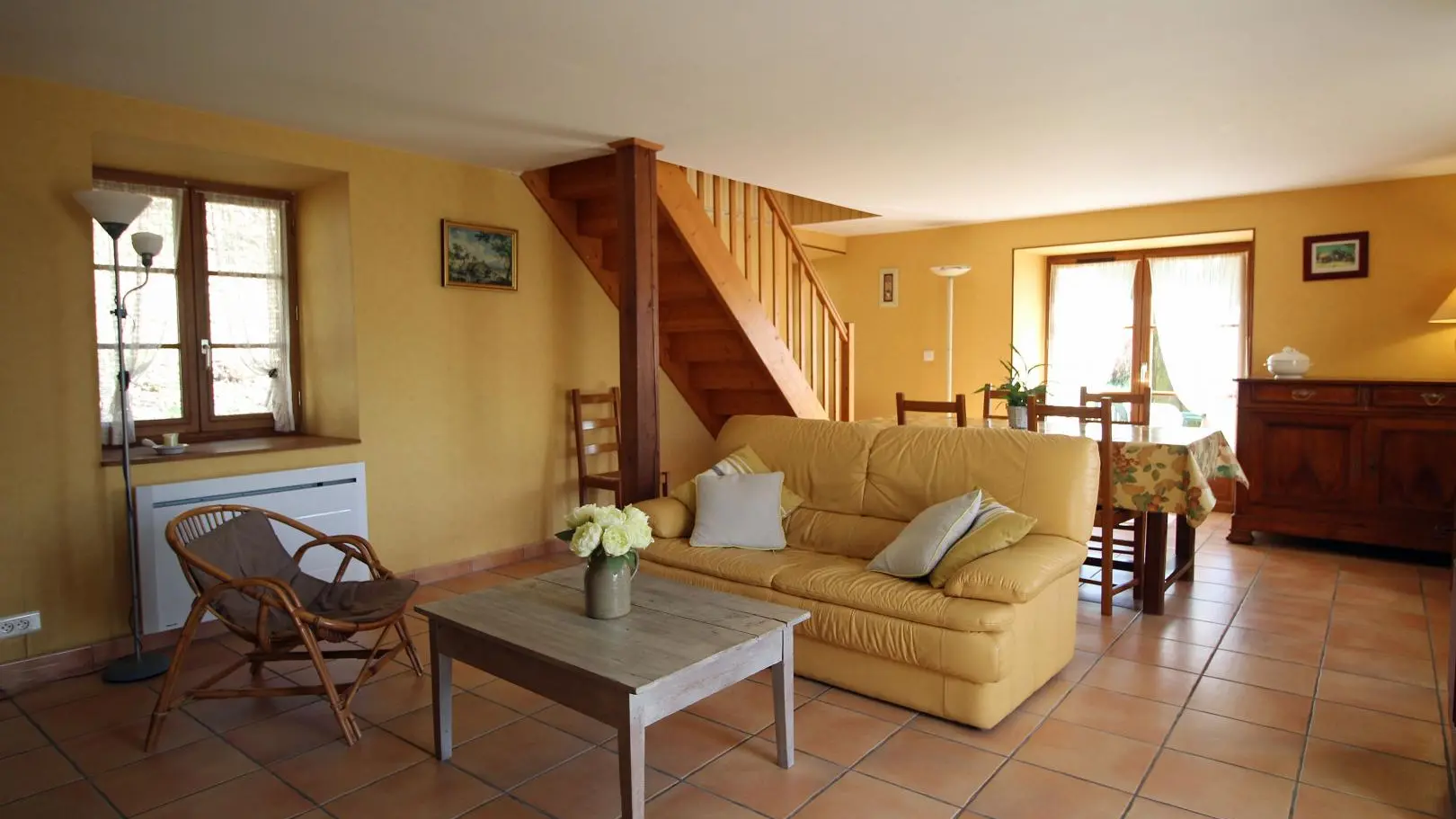 A proximité de la cité médiévale de St Léonard de Noblat, maison indépendante sur un terrain de 1000 m² avec une belle vue sur la vallée de la Vienne. Elle ouvre sur le côté sur une terrasse ombragée par un tilleul. Proximité chemins de randonnée et d'un parcours terra aventura.