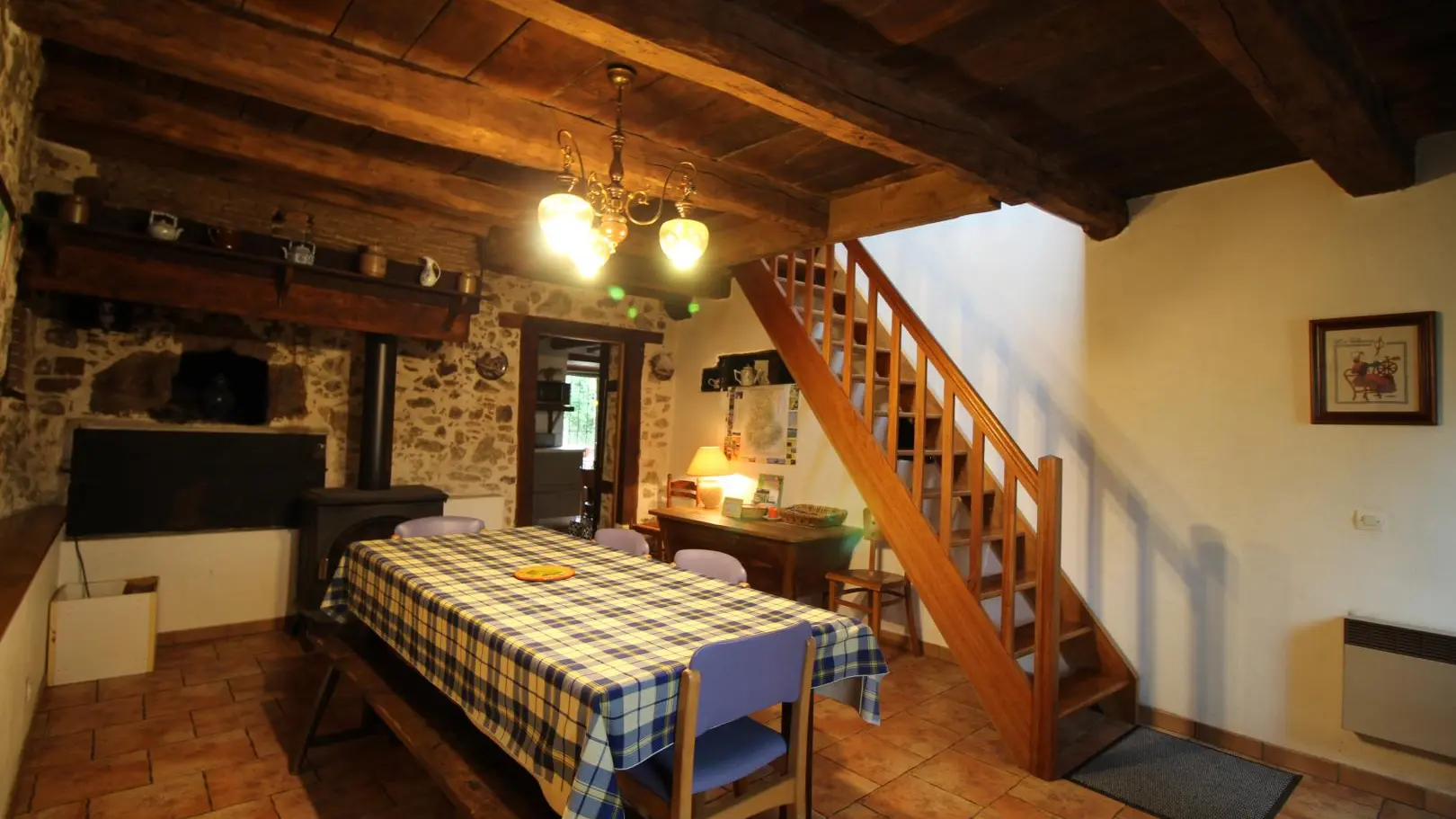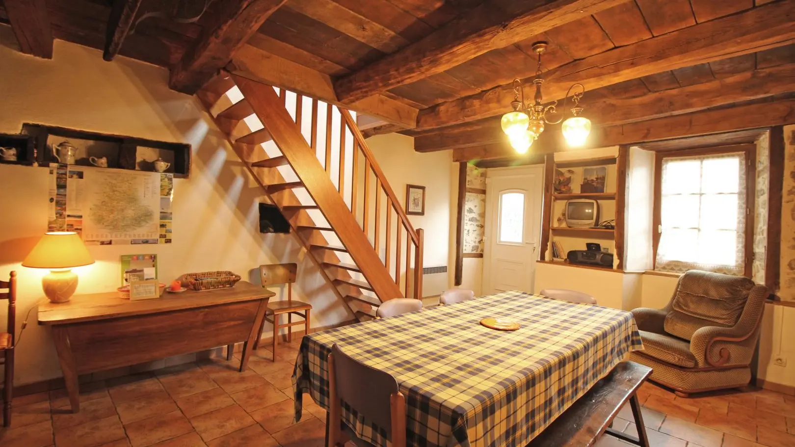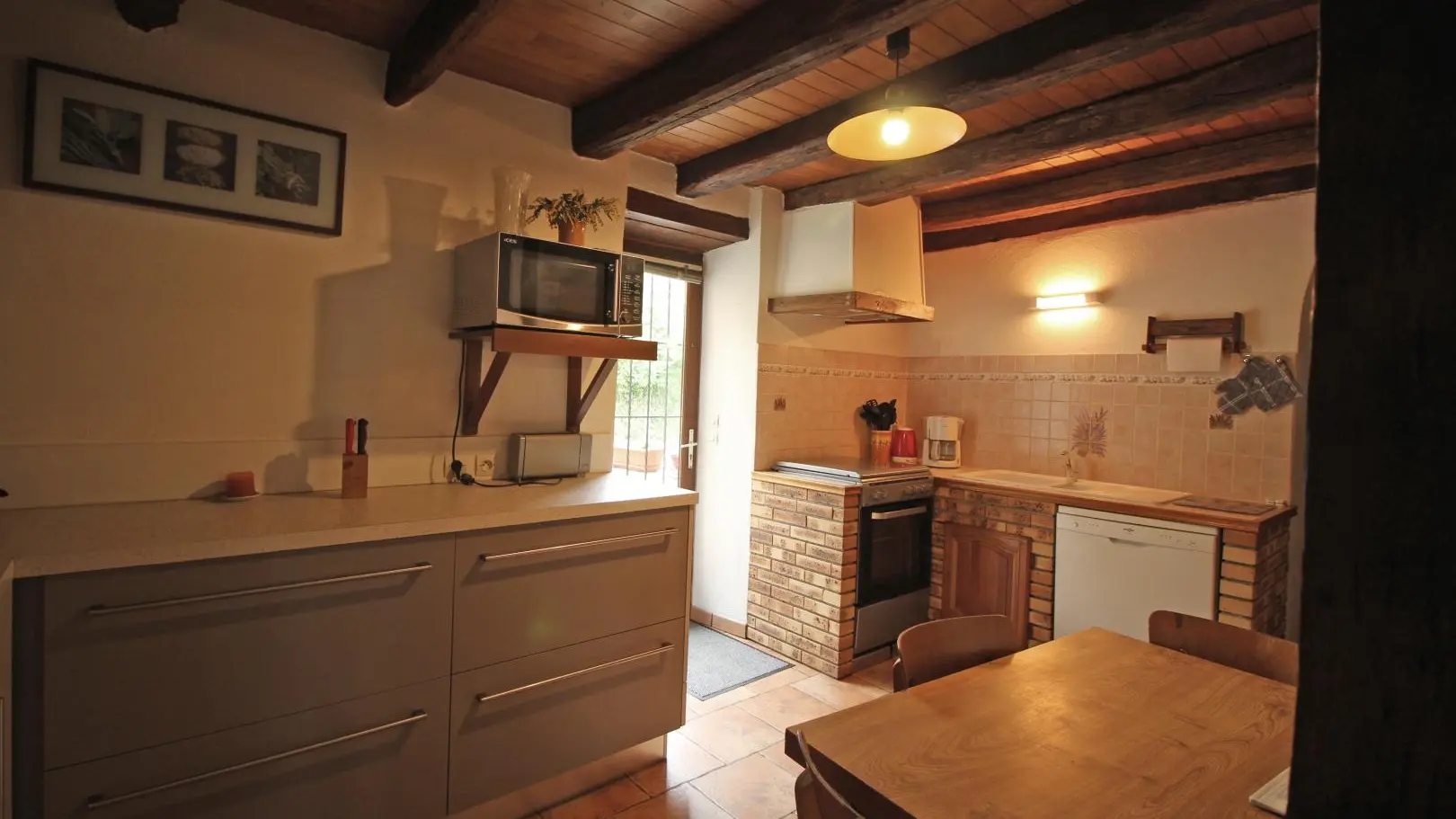 Dans un hameau résidentiel de la proximité de Limoges, la maison mitoyenne ouvre sur l'arrière sur une terrasse et un jardin de 150 m² clos. Ses petites ouvertures, sa poutraison et ses pierres apparentes confèrent au séjour et à la chambre du rez-de-chaussée un caractère rustique.