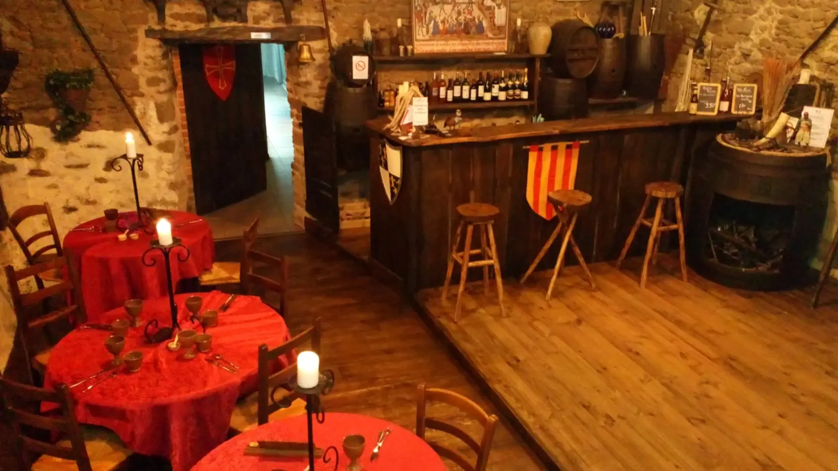 Osez la découverte d'un repas d'antan, vous allez voyager dans l'histoire comme jamais. Dans un cadre, une décoration et une ambiance médiévale, vous découvrirez un service en tenue d'époque. La cuisine s’inspire de recettes historiques traditionnelles ou revisitées par le chef de cuisine avec des produits de saison. Costumes et jeux de table à disposition.